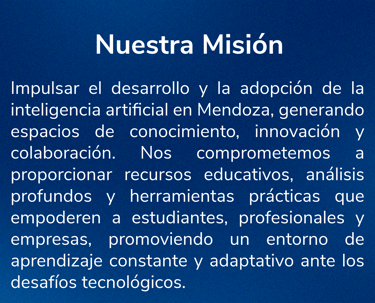 El proyecto nace para satisfacer la necesidad de contar con una fuente confiable y actualizada en un mundo digital en constante cambio. Creemos firmemente que la inteligencia artificial es uno de los motores clave de innovación, y en Mendoza es esencial estar a la vanguardia tecnológica para impulsar el desarrollo regional.