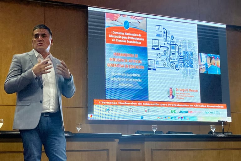 En el marco de las I Jornadas Nacionales de Educación para Profesionales en Ciencias Económicas, diserte en el Consejo Profesional de Ciencias Económicas de San Juan. Mi presentación se centró en un tema importante para el futuro de nuestra profesión: la Inteligencia Artificial (IA) Generativa y su aplicación en el ámbito educativo.